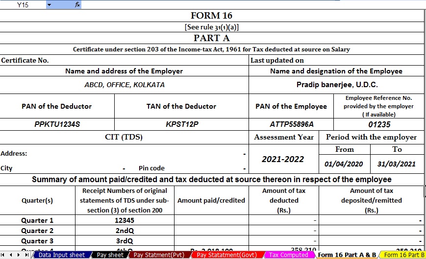 $ This Excel the utility can prepare automated Revised Form 16 Part B