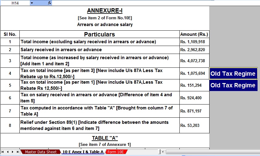 To claim the amount back under section 89(1) which was paid to due arrears, it is mandatory to fill the form without filling the fill you cannot claim back the amount. Form 10E allows you to enter all the income and deduction details of all years.