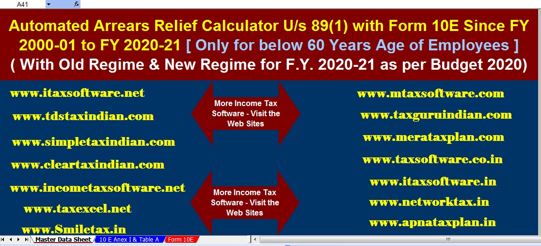 Click to Download Automated Income Tax Arrears Relief Calculator in Excel with Form 10E from the F.Y. 2000-01 to F.Y.2020-21 (Up-to-date Version as per Budget 2020)