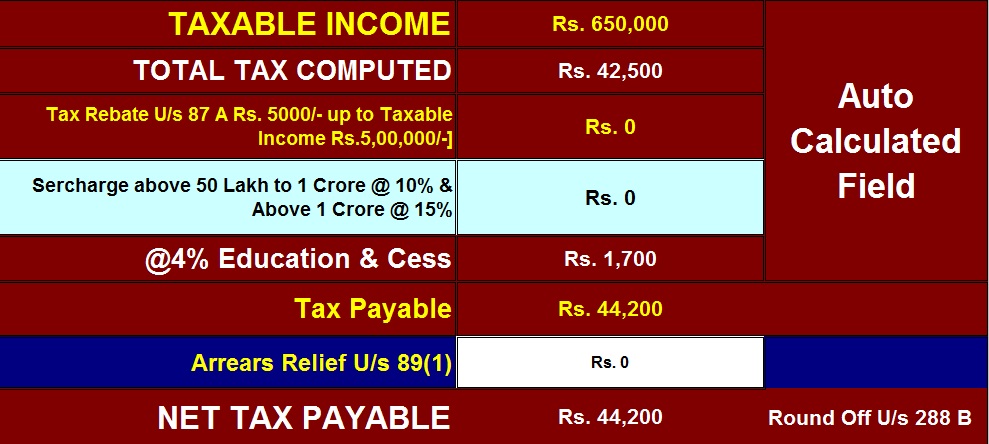 Step5: In FY 2016-17 my earning excluding arrears (which is actual) is Rs. 2,51,000, tax paid for FY 2016-17 is Rs. 12,780.